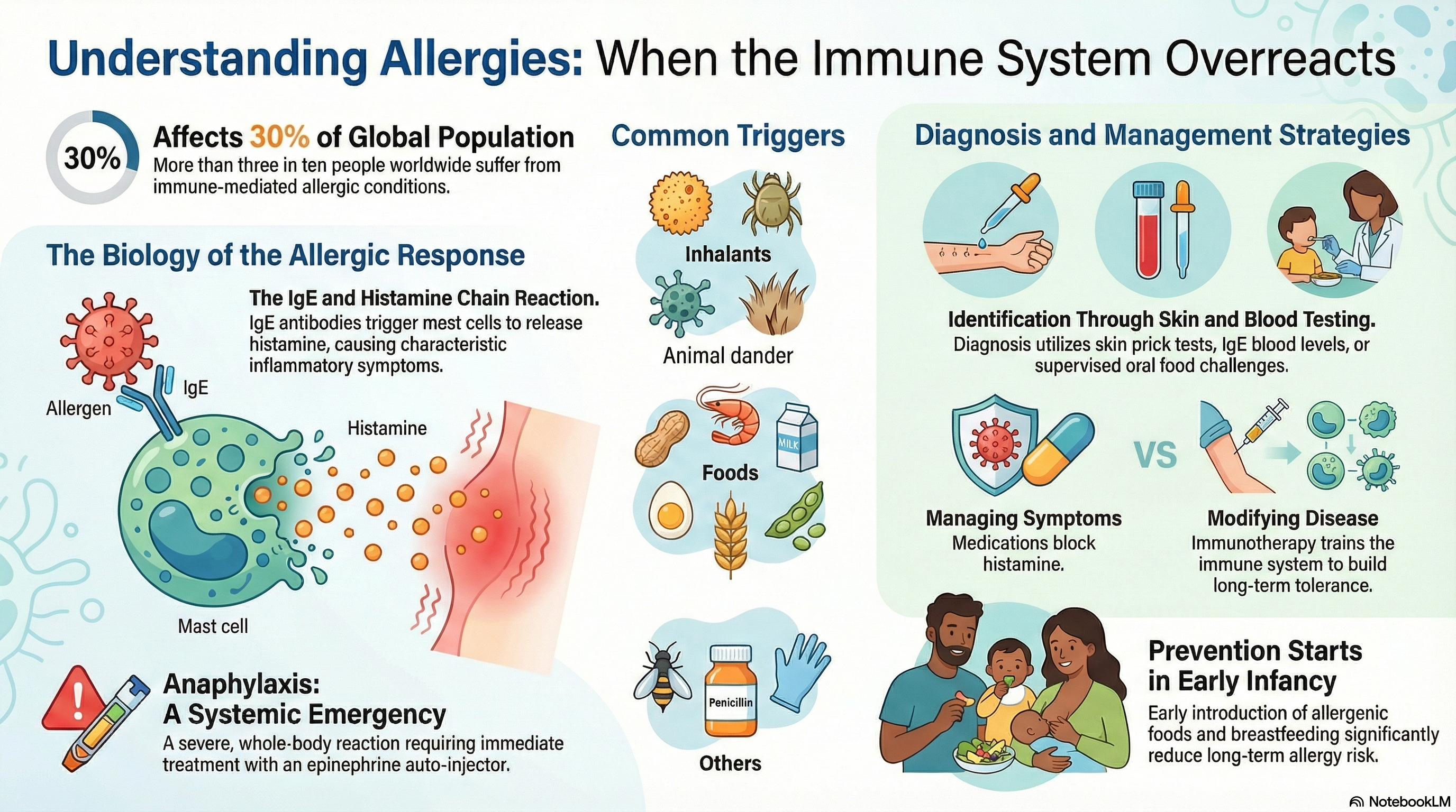 This condition affects more than 30% of the global population and involves the production of specific IgE antibodies. When an allergic person is exposed to their specific trigger, these antibodies prompt immune cells (mast cells and basophils) to release inflammatory chemicals, such as histamine. This release results in the characteristic symptoms we recognize as an allergic reaction, ranging from mild itching to life-threatening emergencies.