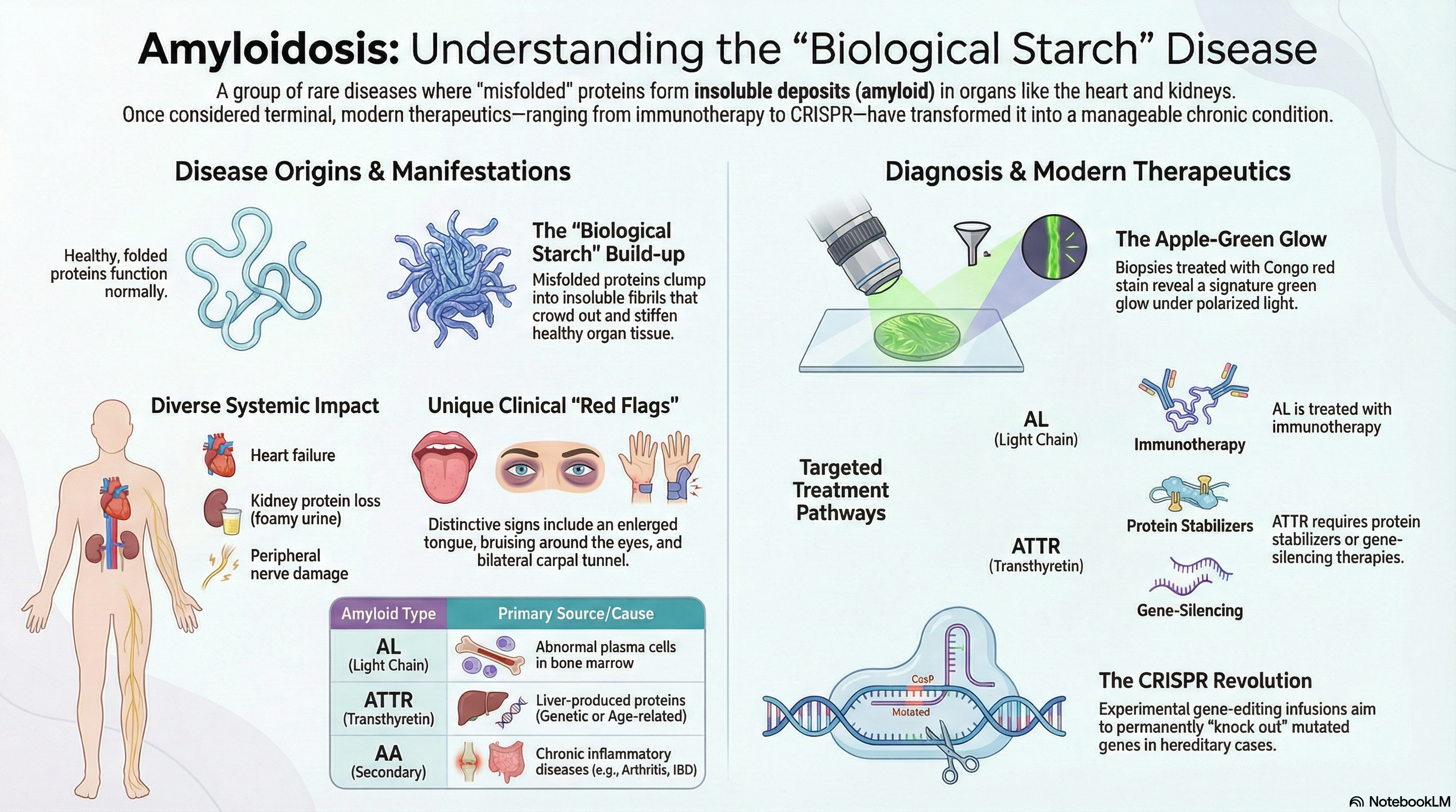 Think of amyloid as a type of biological "starch" that the body cannot easily break down. As these deposits grow, they crowd out healthy tissue, causing organs to become stiff and eventually fail. Amyloidosis is not a single disease; it is categorized based on the specific type of protein that is misfolding. While it can affect almost any part of the body, it most commonly impacts the heart, kidneys, liver, and nervous system.