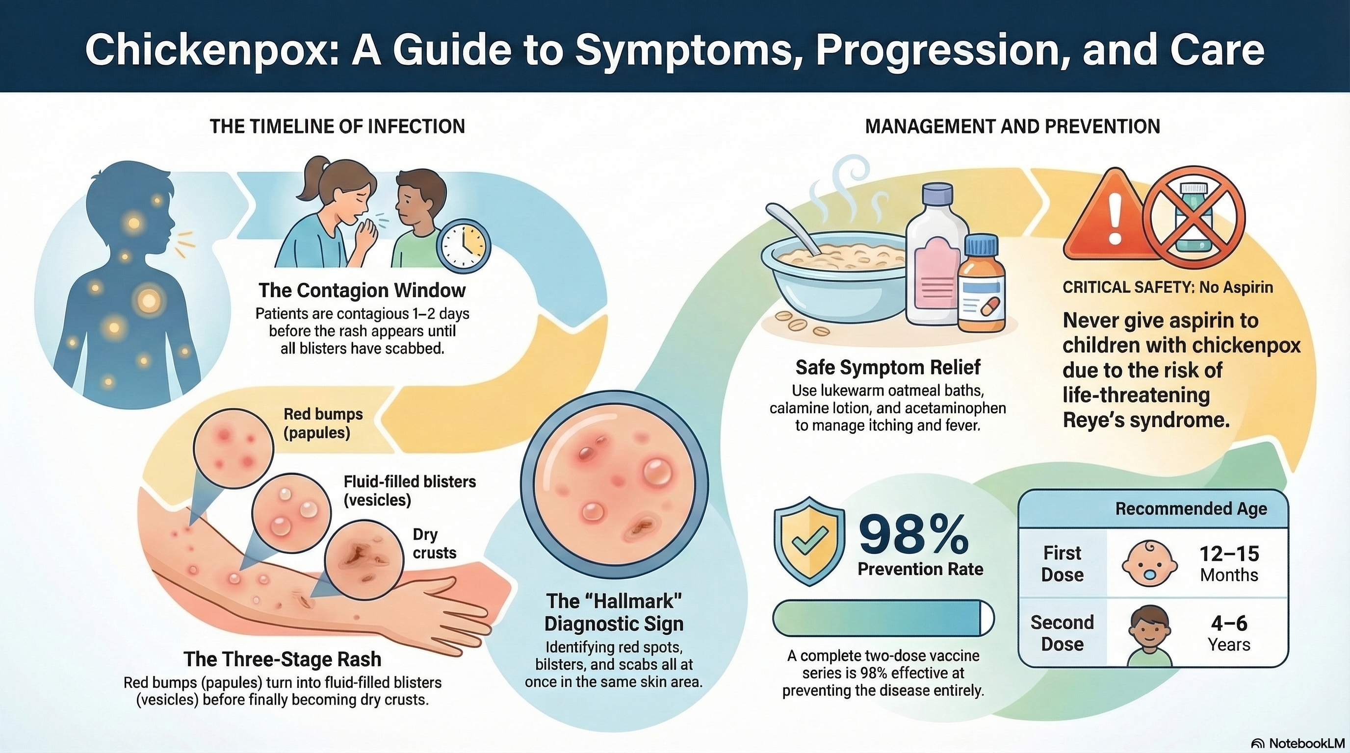 Fever Medicine: Use acetaminophen (Tylenol). NEVER give aspirin to a child with chickenpox, as it is linked to Reye’s syndrome, a rare but life-threatening condition affecting the liver and brain.